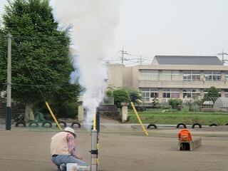 心配していた天気にも恵まれ、今日は予定どおり運動会を実施します。午前6時に実施の合図の花火を打ち上げました。花火の音を聞くと運動会だと気持ちが高揚します。思い出に残る楽しい運動会になるように祈っています。