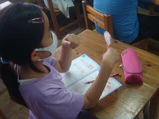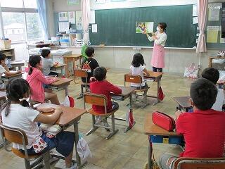 ALTのシェラリン先生が来校したときは各学年を順番で回って英語で歯磨きの指導をしてくれています。今日は1年教室に来てくれました。1年生はビデオにあわせて楽しそうにブラッシングしていました。先日歯科検診を実施しましたが、しっかり歯磨きをして虫歯の予防に努めてほしいと思います。