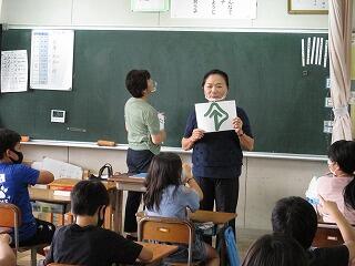 先週の点訳教室に引き続き、今日は手話ボランティアの先生に手話を教えていただきました。名前の表し方を教わった後、ペアになって手話で自己紹介をしました。子どもたちは興味をもって活動していました。ボランティアの先生が、子どもたちが関心をもって学んでくれたのでとても楽しかったと言ってお帰りになりました。