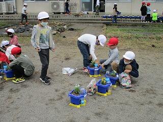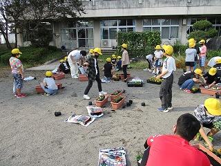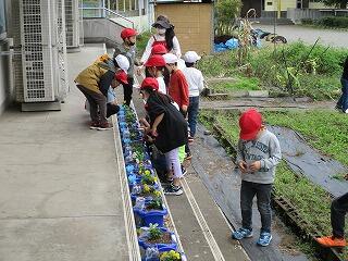 10月19日(火)1年生がスミレとチューリップを植えていました〈生活科〉
