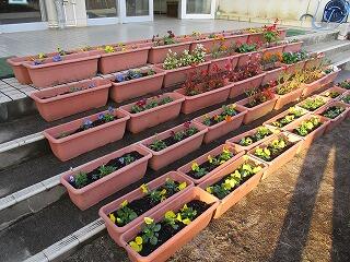 5年生がパンジーの苗を植えてくれました。パンジーは大切に育てれば春まで花を咲かせます。水やりを忘れずにしっかり育ててほしいと思います。春には5年生はいよいよ最上級生になります。パンジーのようにきれいな花を咲かせる6年生になることを期待しています。