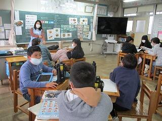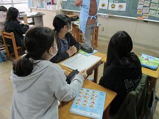 2校時に6年生、3校時に5年生が、津田小の見目先生に食育指導をしてもらいました。5年生は、5大栄養素について学んだ後、栄養のバランスを考えて献立を追加していく学習をしました。6年生は、しっかり1食分の献立を考える学習でした。どちらの学年も、班で活発な意見交換ができて発表も上手だったとほめてもらいました。