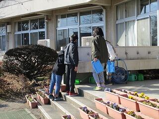 新型コロナウイルス感染症の拡大が続いています。残念ながら本日の授業参観や各種会議が中止や延期になってしまいました。学校では基本的な感染症対策を徹底していきたいと思います。そんな中、いつもスクール・サポート・スタッフの石川さんが丁寧に消毒作業を行ってくださっているので助かっています。週末の過ごし方など、ご家庭でも感染症対策をよろしくお願いします。
