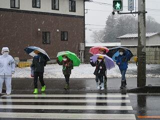 おかげさまで大きな混乱もなく登校できました。安全面へのご配慮ありがとうございます。下校時の安全を考えると早くやんでほしいところですが、子どもたちは雪が積もることを楽しみにしているようです。とても複雑な思いです。
