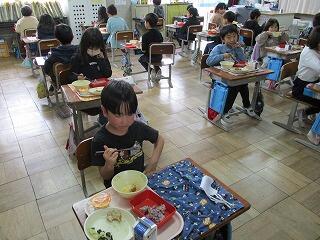 今日は1~5年生が学力テストでした。教室をのぞいたら、どの子も真剣に取り組んでいました。今日の給食はあげパンだったので、頭を使った子どもたちに、よいご褒美になったと思います。