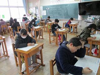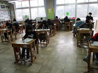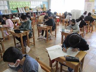 6年生は、2,3校時に国語と算数の学力テストを実施しました。頭を使ってほっとする間もなく、6校時は、なわとび記録会でした。卒業まで約1か月。学力、体力ともしっかり身に付けて、立派な中学生になってほしいと思います。