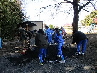 駐車場入り口と第2グランドへの通路に砕石を入れました。ダンプで運ばれた砕石の山は意外と重く、均すのは一苦労ですが、6年生がとてもよく働いてくれました。6年生のおかげで石川小が着実に整備されています。