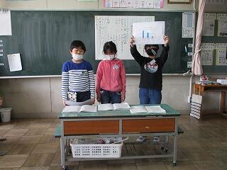 3年生が、グループに分かれて石川小のよいところを発表しました。しっかりした発表態度に感心するとともに石川小のよいところを再確認することができました。こんな立派な発表ができる3年生が石川小のじまんだと思いました。