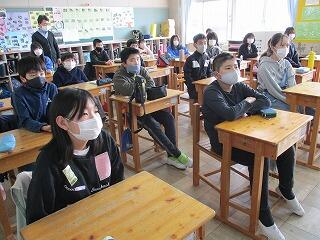 中学校訪問ができなかった6年生のために、北犬飼中学校がオンラインで説明会を開いてくれました。生徒会がつくった中学校の紹介ビデオを興味をもってみていましたが、やはり部活への関心が高かったようです。また、中学校の先生が6年生の質問に丁寧に答えてくれたので、安心して中学校へ行くことができそうです。ありがとうございました。