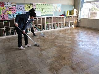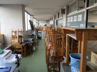放課後、先生たちが教室にワックスを塗りました。6年生は、きれいな教室で卒業することができます。その前に、月曜日の朝、机運びをするようかもしれませんが・・・