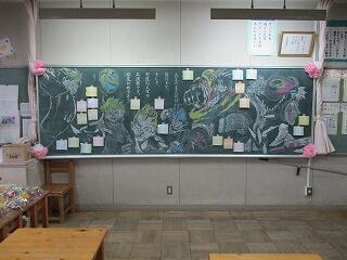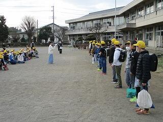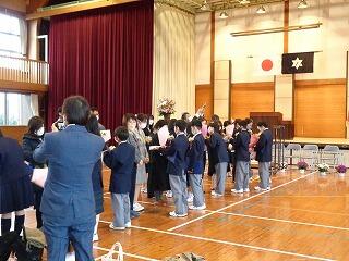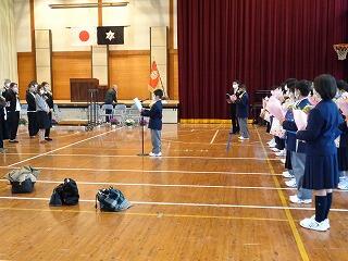 一斉下校のとき、6年生と1~5年生がお別れの式をしました。いよいよ今日が6年生と過ごす最後の日となってしまいました。お別れはさびしいですが、6年生の卒業をみんなでお祝いしました。