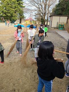 体育小屋の解体にともない、竹ぼうきが外に出しっぱなしになっていました。気になっていましたが、先週卒業式前でみんなが忙しい中、4年生が進んで小屋にしまってくれました。6年生の後を継いで下級生が頑張ってくれている姿が見られて、とてもうれしく思いました。