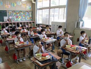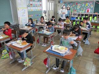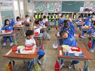 1年生は今日から通常の日課での学校生活になりした。給食も上級生と同じメニューになります。みんな口々に給食はおいしいと話してくれました。おかわりする子も多かったようです。しっかり食べて元気に学習や運動に取り組んでほしいと思います。