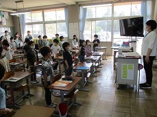最近子どもたちの人間関係を築く力が弱まっていると言われています。本校でも「コミュニケーション力」を育てていきたいと考え、月1回、ソーシャルスキルトレーニングの時間として「いしかわタイム」を設定しました。第1回目は、「あいさつ」でした。今年1年かけて人間関係力の向上を目指していきたいと思います。
