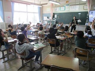 6年生が薬物乱用防止広報車「きらきら号」による薬物乱用防止教室を行いました。警察の方のお話を聞いたり、誘われたときの断り方をロールプレイングしたりしました。体に与える害や薬物乱用防止のための行動をしっかり学ぶことができました。