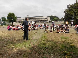 地震が起きた後、火災が発生したという想定で、今年度最初の避難訓練を実施しました。災害はいつ発生するかわからないので、自分の身は自分で守れる子どもになってほしいと思います。また、教職員も非常時に適切な対応がとれるように、今一度気を引き締めて参ります。