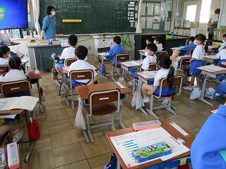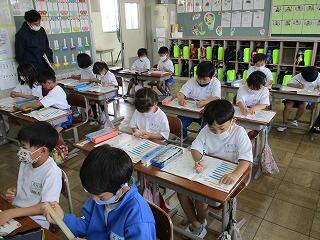 1年生の算数の授業をみんなで参観しました。運動会の練習の疲れが出ているだろうと思ったら、45分間集中して学習に取り組んでいたので、びっくりしました。自分にあった学び方を選んだり、友達と協力して学習したり、もう2~6年生と変わらない感じでした。先生たちも、1年生に負けないように、放課後、授業研究会を開いて勉強しました。