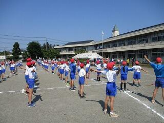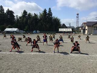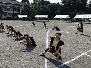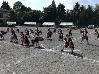 中学年の運動会練習で南中ソーランを踊りました。本番に向けて、ハチマキをつけ、ハッピを着ました。どの子も格好良く着こなしていました。練習を重ねる毎に成長する姿を見ることができました。本番の演技がとても楽しみです。