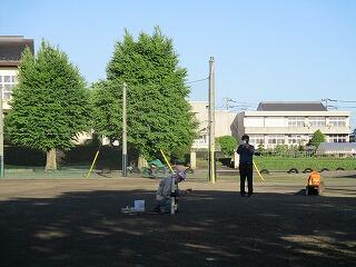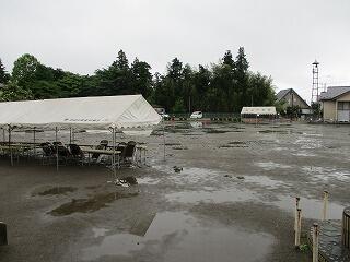 先週の天気予報では土曜日は雨マークだったので、天気を心配していましたが、お昼には雨もあがり、青空が出てきました。下の写真は、12時と16時の校庭の様子です。明日までには、水たまりも無くなると思います。天気に恵まれた運動会になりそうで安心しました。今日は早く寝て、明日に備えましょう。