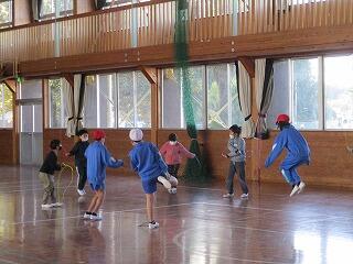 業間の休み時間に5年生が2年生になわとびを教えていました。人にものを教えることが自分の学びにもなると言いますが、きっと5年生もなわとびが上達するに違いありません。