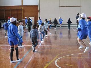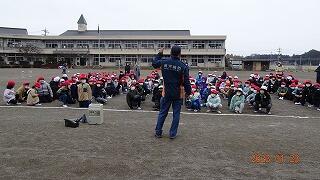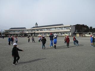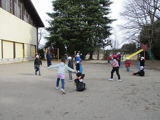 ロング昼休みに、なかよし班で遊びました。風花が舞い、天気予報通り気温が上がらない寒い一日となりましたが、子どもたちは歓声を上げて、校庭を走り回っていました。今の子も、昔の子に負けずたくましい面があると、防寒着を着込んで見ていました。