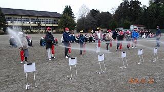 2校時は火事を想定した避難訓練でした。消防署の方の協力を得て、消火訓練と煙訓練も実施しました。煙が充満すると視界が悪くなって、どっちに逃げればよいかわからなくなってしまう怖さを感じました。もし、火事に会ってしまったら、訓練で学んだことを生かして、落ち着いて行動してほしいと思います。