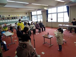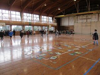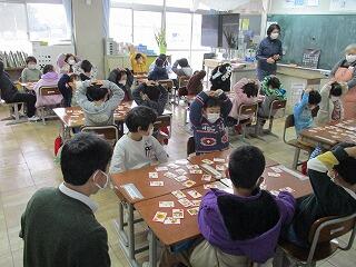 今まで控えていた大カルタを久しぶりにやりました。これは石川をテーマにKLVのみなさんが作ってくれたものです。底冷えのする体育館でしたが、5・6年生が元気にカルタに向かってダッシュしていました。他の学年も教室でカルタを楽しみました。