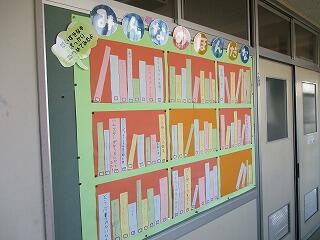 図書室に5年生のお薦めの本が並んでいました。国語の授業で取り組んだそうです。また、図書室の入り口には、みんなのお気に入りの本が掲示されていました。本離れが指摘されて久しくなりますが、ぜひお薦めの本を手に取ってみてほしいと思います。