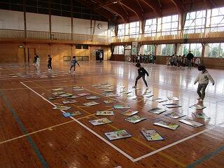 今朝は、1,2年生が大カルタに挑戦しました。冷え込みが厳しい体育館でしたが、子どもたちの歓声が響いていました。カルタを通して、石川地区のことをさらに詳しく知ってほしいと思います。