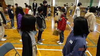 6年生が、下級生と最後の交流の時間をもちました。各学年と人間ボーリングや氷おになどをして楽しく遊びました。下級生がお守りや歌をプレゼントしてくれました。石川小の思い出がまた一つ増えましたね。