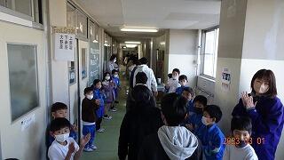 1~3年生は卒業式に出ないため、今日で6年生とお別れになります。一斉下校時に、最後のお別れをしました。6年生も黄色い帽子をかぶって下校するのは最後になります。6年間、暑い日も寒い日も歩いて石川小に通った道、感慨深いものがありますね。