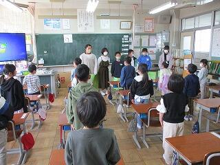 6年生が、1年生を迎える会を企画して、5校時に、こおりおにをして遊んだり、手作りのコマをプレゼントしてくれたりしました。1年生から「6年生が卒業するときには、自分たちも何かしてあげたい。」という話が出て、びっくりするとともに、とても微笑ましく思いました。