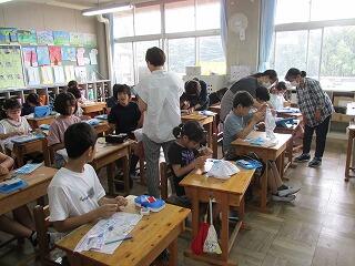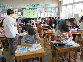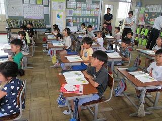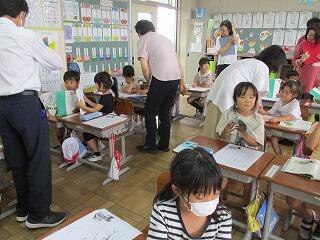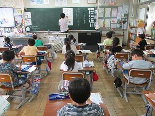 今日は、2校時に1年生、4校時に個別学習教室3組が、研究授業を行いました。蒸し暑い日が続いていますが、子どもたちは45分間集中して学習に取り組んでいて感心しました。また、みんなよく先生や友達の話を聞いていて素晴らしかったです。