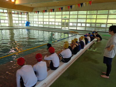 私は前回低学年の水泳学習に行ったのですが、今回は高学年の引率の仲間に入れてもらいました。