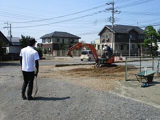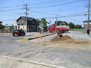 駐車場入り口のへこんでしまった所に砂利を入れてならしたので、通りやすくなったと思います。ただ、交通量が多いので、国道に出る際は、左右の安全確認を忘れずにお願いします。