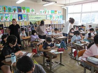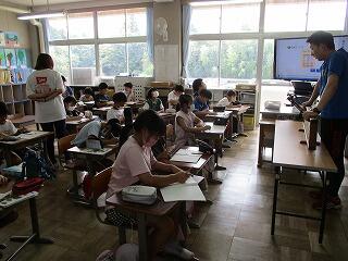 4年生がそろばんの学習をしました。小数や大きな数のたし算・ひき算に挑戦しましたが、4人の学習支援ボランティアの皆さんが丁寧にみてくださったので、学習がはかどりました。2学期には、3年生がそろばんの学習をするので、そのときもよろしくお願いします。