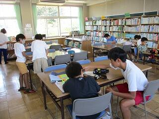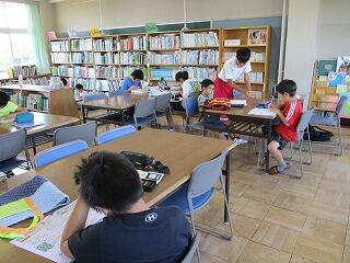 今日は北犬飼中学校の生徒が学習支援ボランティアとして石川小に来てくれました。図書室の地域開放で来ていた小学生が分からないところを教えてもらいました。時間いっぱい熱心にみてくれたので、子どもたちは夏休みの宿題がはかどりました。自分の勉強も忙しいところ、母校のためにボランティアとして来てくれて、本当に感謝です。