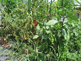2年生の学級園に、ミニトマトやピーマン、ナスがなっています。夏休み中にだめになってしまうので、2年生は、自由にとっていいそうです。学校に来る機会があったら、他の友達のことも考えながら、野菜が無駄にならないように上手にとって行ってくださいね。