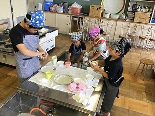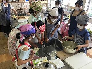 午前中は、すこやかサークルの体験講座で、野菜スープとホットケーキ作りをしました。自分で作った料理は格別だったようです。後片付けまでしっかりやっていて感心でした。夏休み中、家でも手伝いができるといいですね。すこやかサークルの皆様、大変お世話になりました。