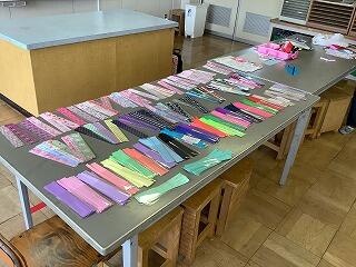 子どもたちが夏休み中にがんばって取り組んだ作品がそろいました。その中で、コンクールに出品するものを作品支援サークルの皆さんが整理してくれました。学期始めの忙しい時期なので、たいへん助かっています。たくさん入賞するといいですね。
