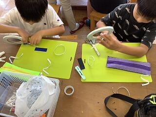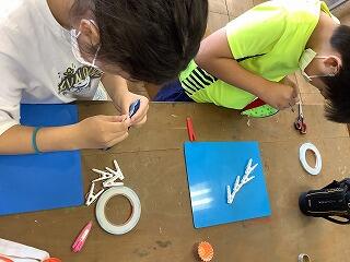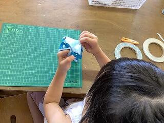 両面テープで布を張り付けるので簡単ですが、どの子もずれたりしないように気を付けて、丁寧に作り上げていました。