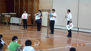 新しく2名の教員を迎えて、2学期がスタートしました。始業式では、個性の違う友達が集まった時、無理に一つに合わせるのではなく、素敵なハーモニーが奏でられると素敵だという話をしました。まだまだ暑い日が続くようなので、健康・安全面に十分配慮して教育活動を進めていきたいと思います。2学期もよろしくお願いします。