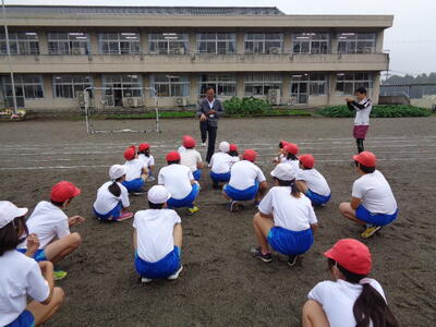 先生は、にこやかに、そして分かりやすく子どもたちへの走り方の指導をしてくださいました。