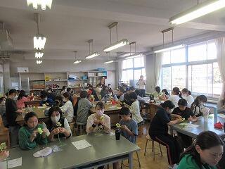 4月から津田小の調理場でつくられた給食が配送されるようになりました。コンテナが届いた後、各学年のワゴンに仕分けしなければなりません。授業中の作業となるので本当に困ってしまいましたが、給食ボランティアの募集をかけたところ、4月から1日も欠かさずボランティアさんが来てくれています。さすが石川地区だと感謝しています。遅ればせながら、やっと今日、ボランティアの皆さんに給食を試食していただきました。毎日本当にありがとうございます。