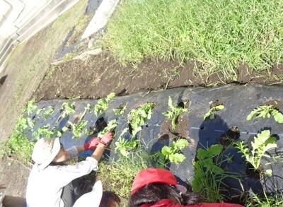 今日は、いく粒かまいた大根が大きくなったので「すぐり菜」をとりました。