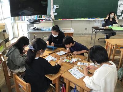 2年生たちは、マスク、ビニル手袋の完全衛生管理で協力して作業しました。