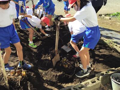 今年は、学校の花壇にいくつか作物が栽培されています。