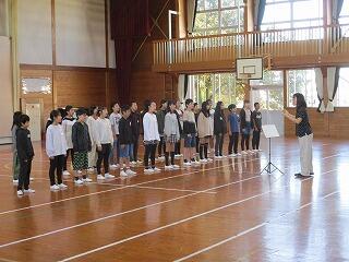 6年生が、市小中合同音楽会で歌う「Let’s search for Tomorrow」を全校生に披露してくれました。とても素晴らしい歌声でした。本番が楽しみです。また、真摯に取り組んでいる6年生の姿は、下級生のよいお手本になっています。150周年を越えて、石川小のよい伝統がつながっていくことをうれしく思います。