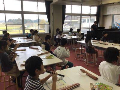 3年生が、リコーダー支援ボランティアの皆さんに指づかいや息の吹き方を教えていただきました。見てもらった子は、吹けるようになってリコーダーが好きになったと喜んでいました。みんなで楽しく「山のポルカ」をリコーダーで演奏しました。