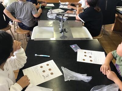 サイエンスクラブは、何を使うと10円玉がきれいになるか調べていました。